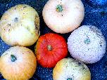 Hier die ersten geernteten Esskürbisse in diesen Jahr .